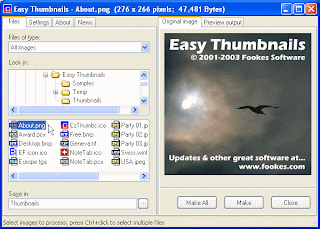 Easy Thumbnails é um programa gratuito que permite criar thumbnails(imagens de tamanho reduzido) das suas fotos/imagens em série, pode também executar edição básica.
